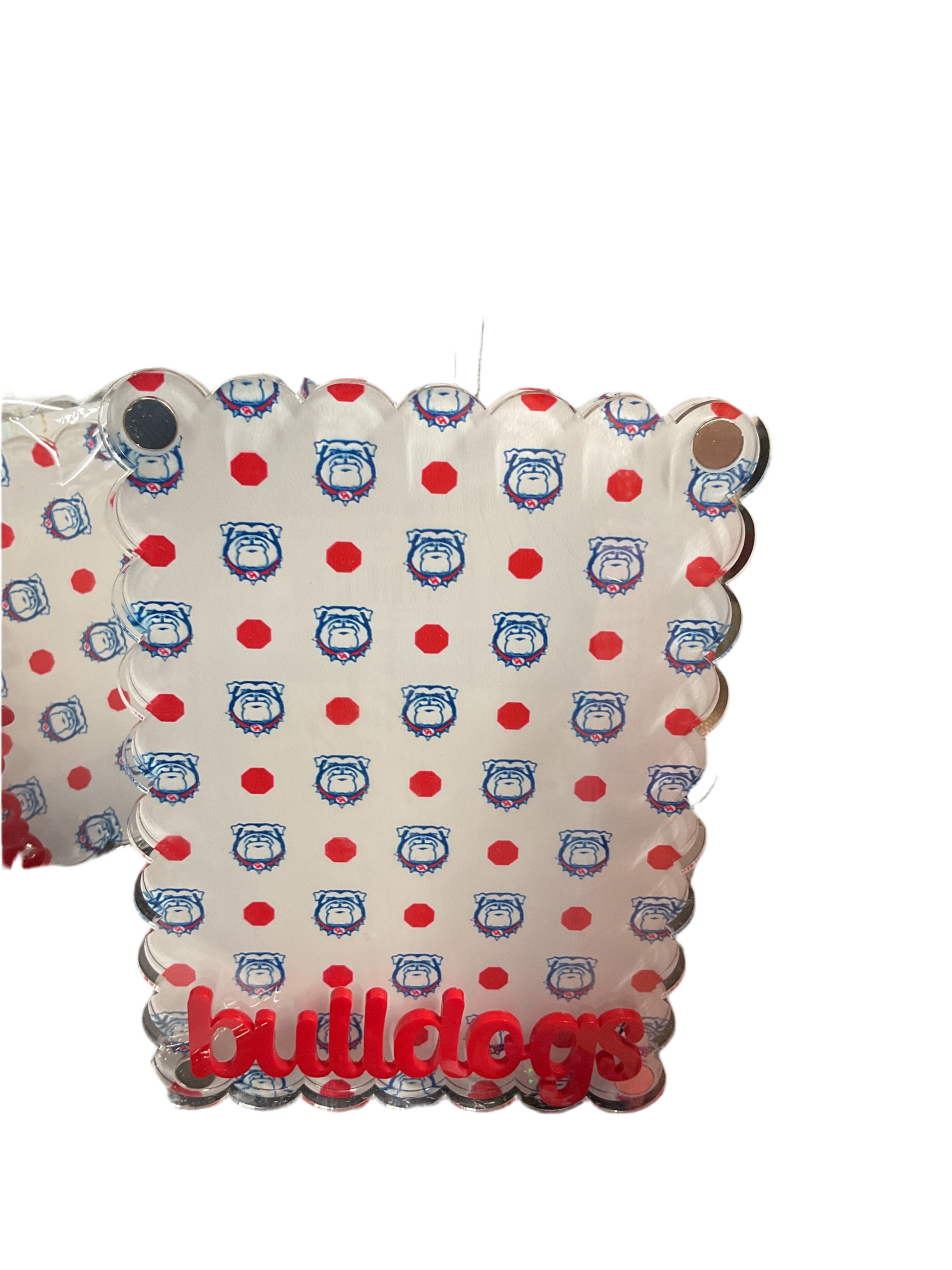 Highlight cherished memories with this custom school picture frame featuring a clear scalloped acrylic design. Showcasing a subtle logo background and bold Bulldogs imagery along the bottom, it combines school spirit with elegant presentation. Ideal for preserving treasured photos, it makes a thoughtful and stylish gift for students, families, and Bulldogs fans alike.