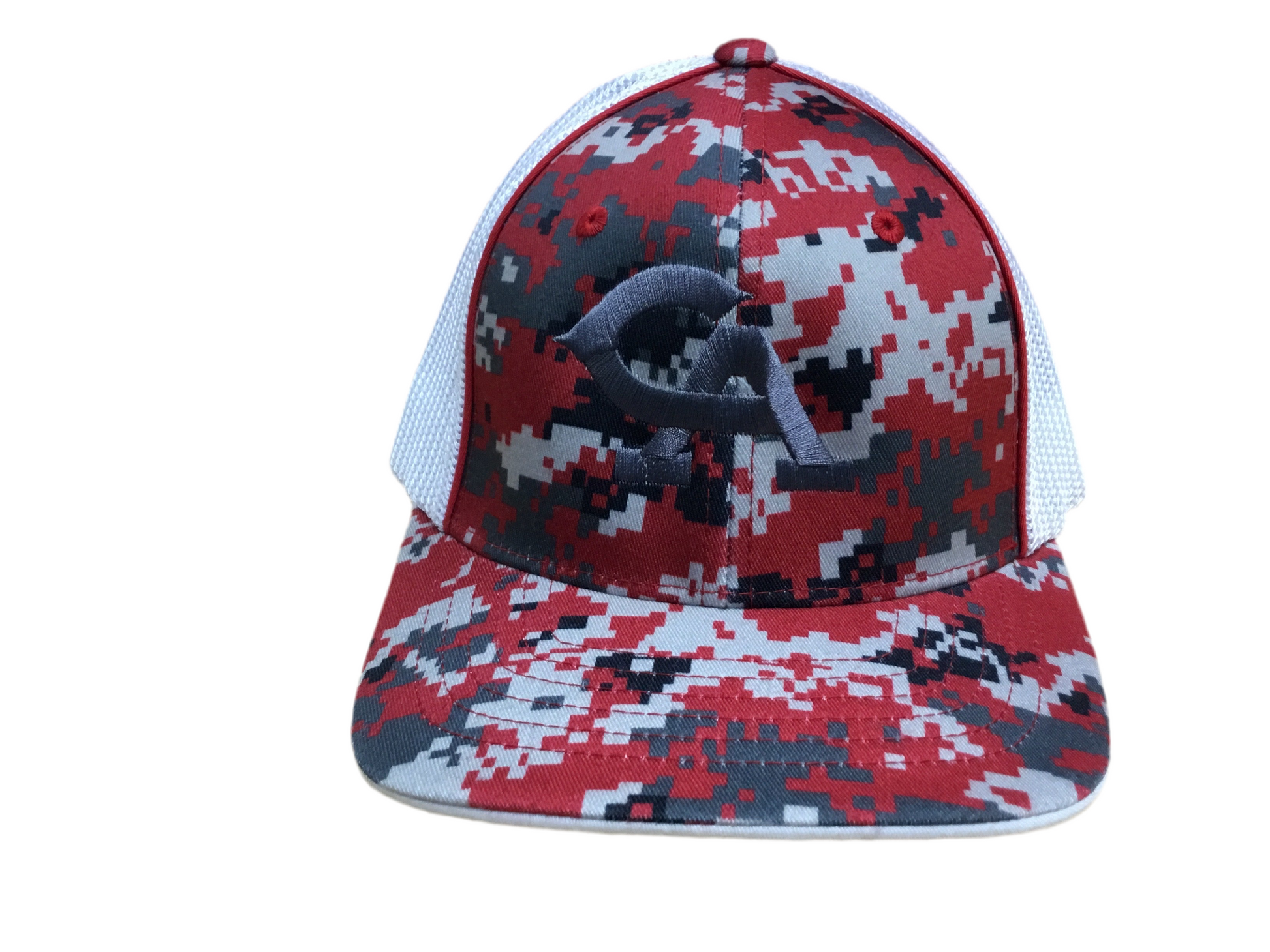 Digi Camo Trucker Flex Fit Caps in red and navy.