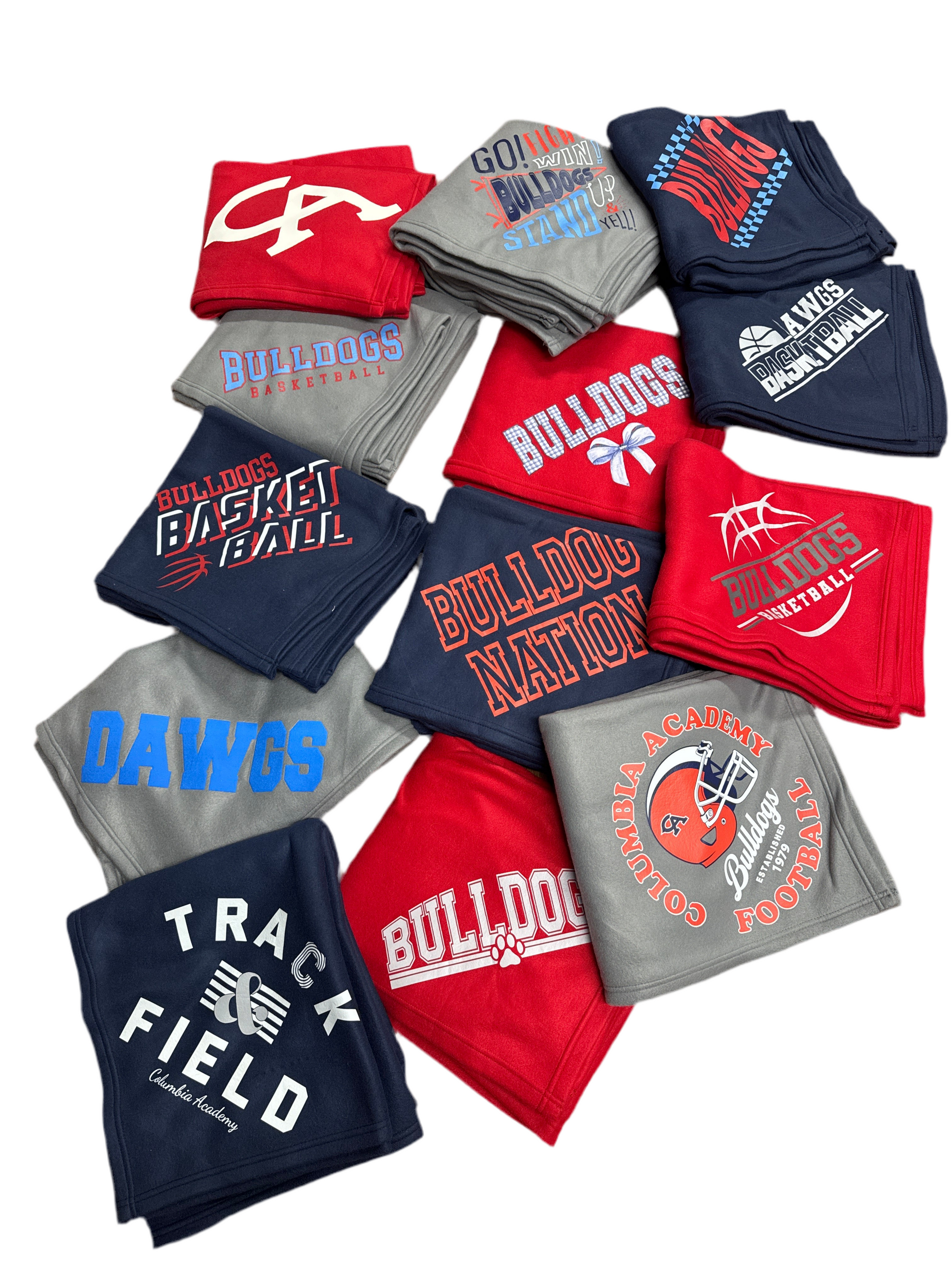 Stay warm and stylish with our Red, Navy, or Gray Fleece Blanket. Each blanket features a unique design and is made of soft, cozy fleece. With a wide selection of designs to choose from, it makes the perfect gift for teachers, staff, or for taking to games around campus. Stay warm and show off your school spirit with our NEW Fleece Blankets.
