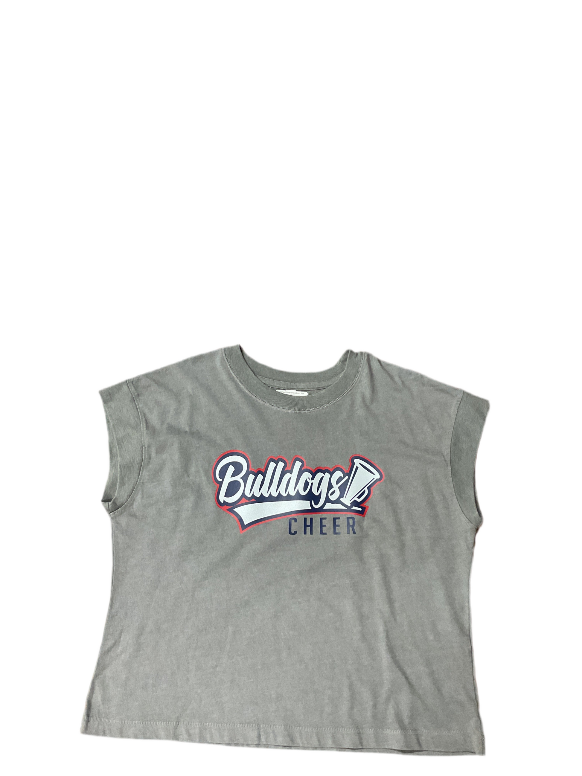 Support your team in style with this ladies' washed grey oversized tee featuring a bold Bulldogs cheer design on the front. Crafted for comfort and a relaxed fit, it’s perfect for showing your spirit while staying cozy. Cheer on the Bulldogs to victory with this versatile and durable tee that combines casual wear with team pride.
