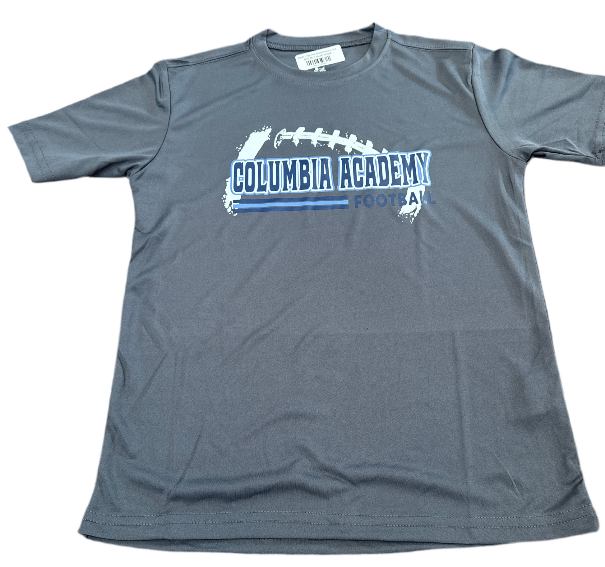 This youth charcoal performance tee features the Columbia Academy football design, making it an ideal choice for game day. Crafted from breathable fabric, it helps keep young athletes cool and comfortable during play or cheering from the sidelines. Durable and stylish, it supports active wear with a sleek, sporty look.