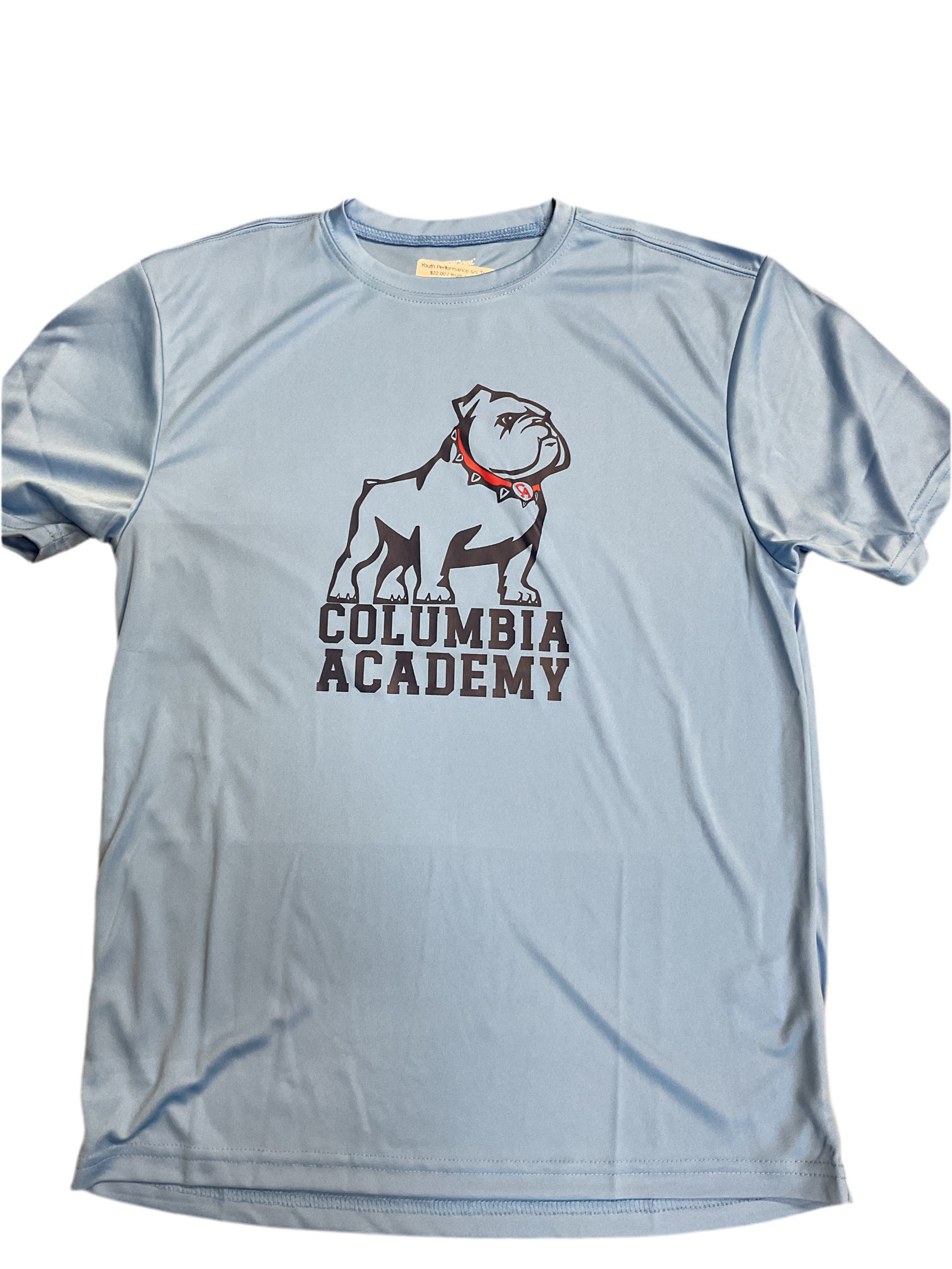 This youth performance short sleeve tee features a bold, large standing bulldog graphic on the front, combining spirited style with breathable, moisture-wicking fabric. Designed for active kids, it offers comfort and durability during sports or everyday wear.