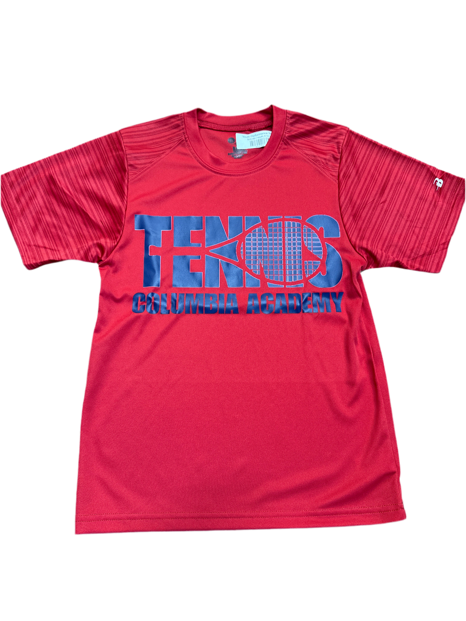Boost your tennis game with our Youth Performance Tennis tee. This red shirt features a stylish Tennis design, perfect for showing support for your favorite player. Stay comfortable while cheering on the court.